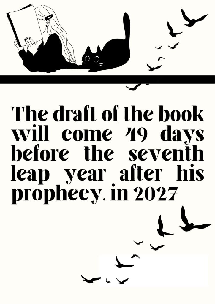 The Draft Of the book will come 49 days before the seventh leap year after his prophecy, in 2027